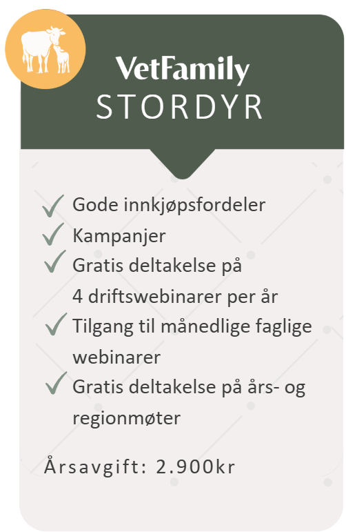 Med VetFamily Stordyr får du tilgang til gunstige leverandøravtaler hos sentrale aktører i bransjen – noe som gir konkrete besparelser på dine innkjøp. I tillegg får du støtte til smartere drift innen økonomi og administrasjon. Vårt mål er å bidra til utvikling av stordyrsektoren – både faglig og driftsmessig. Sammen bygger vi et fellesskap der erfaringsdeling og kompetanse står i sentrum.